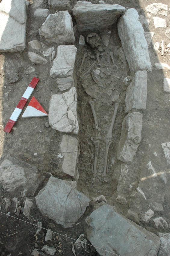 На окраине древней Педасы располагался некрополь, древнее кладбище, состоявшее из гробниц типа «толос». Они представляли собой сооружения на высокой круглой площадке диаметром от 10 до 14 метров, построенные методом ступенчатого свода, образовывавших курганы. В основном склепы были семейными, поскольку при раскопках были найдены останки людей, генетические исследования которых показали, что они являлись родственниками. Кроме того, ученые обнаружили крематорий, расположенный у подножья некрополя.